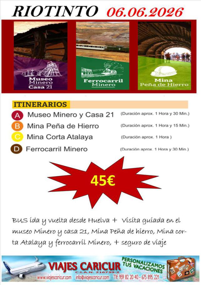 - A través de sus salas podrás conocer los 5.000 años de historia minera de la comarca de Riotinto, la evolución de los trabajos, herramientas, piezas históricas,