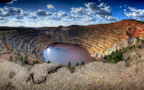 galería de 200 metros de longitud que desemboca en un mirador exterior con una impresionante vista de su corta minera, origen de las aguas del río Tinto.